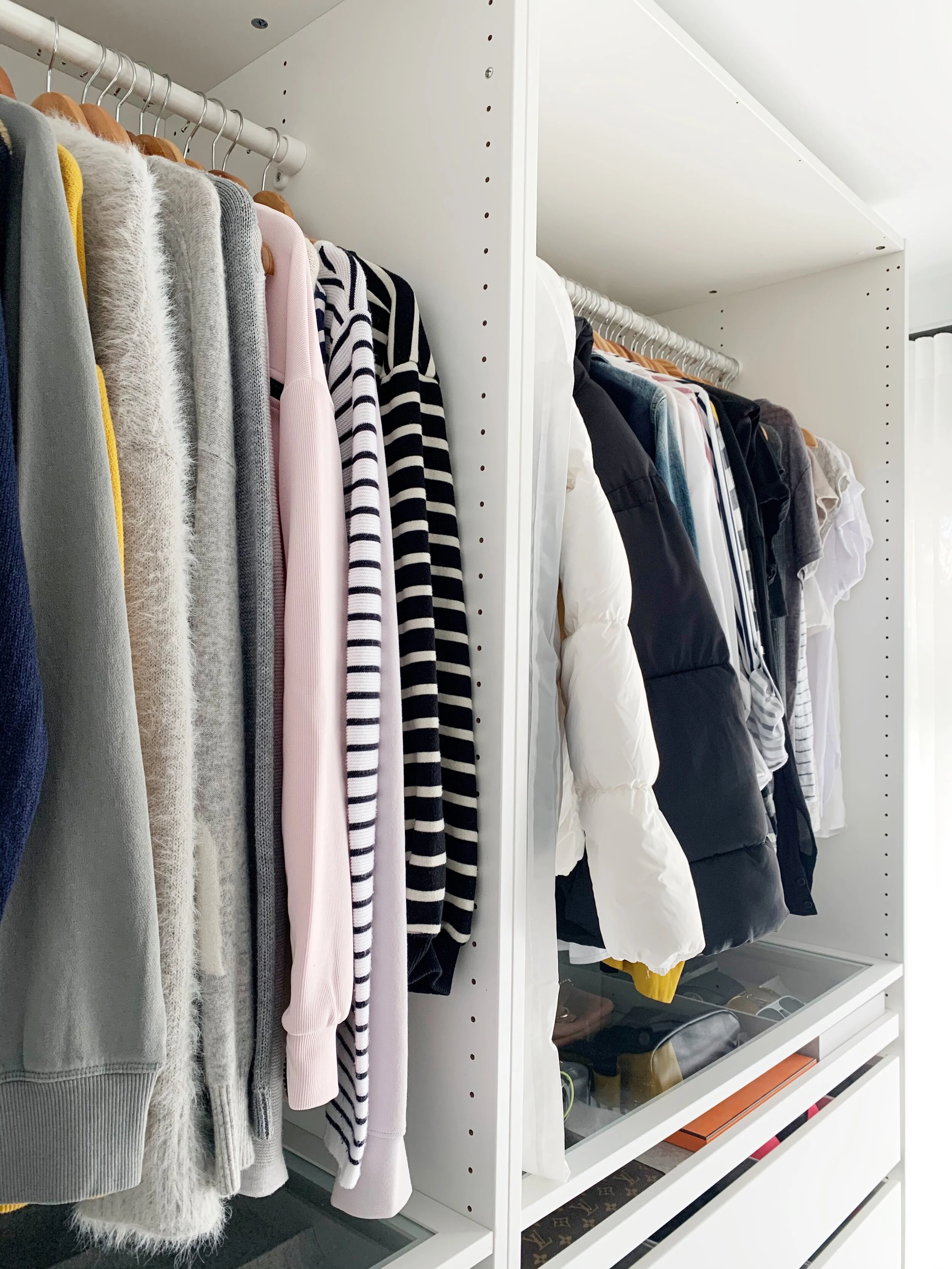 150x66x236.4 cm white/nykirke frosted glass, check pattern. This option of the pax wardrobe features 5 drawers with other storage options like shelving and clothing rods. But first i'll quickly share how you start the design of an ikea closet. It's about 4 feet wide and 7 feet tall. In good used condition, very sturdy, very comfortable and very solid piece of furniture, has some scratches. Ikea kallax unit used for bag and hat storage in the. The genius behind them is that you can hang coats in the opposite direction from the way that a typical rod would run which is exactly what i needed for this shallow space! See more ideas about closet bedroom, closet designs, closet design. Home delivery cost is 19, 90 €. Choose items to buy together. Our heaviest, biggest piece of furniture is this massive freestanding ikea wardrobe we bought. Read about the terms in the guarantee brochure. Ships from and sold by amazon.com.